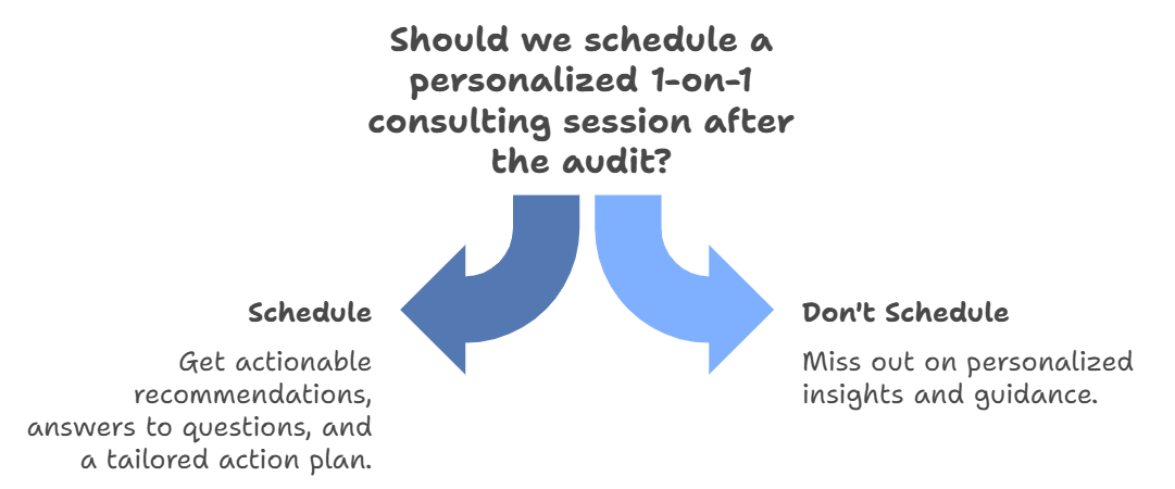 Before the session, you will receive a questionnaire to fill out, which helps us tailor the audit and consulting session to your specific needs.