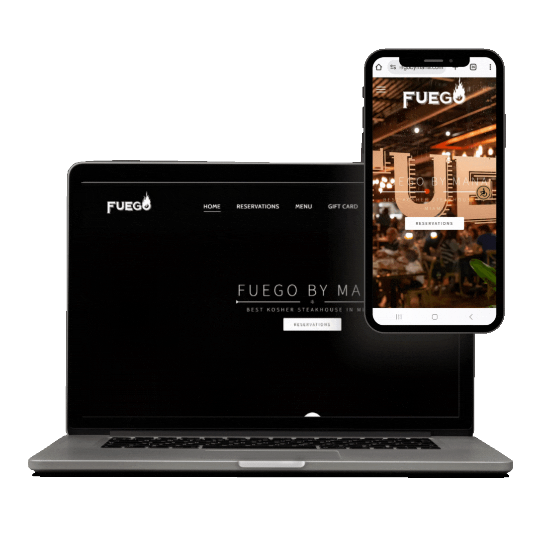 When developing the Fuego by Mana website, we focused on creating an immersive digital experience that reflects the high standards of this leading kosher steakhouse. The steakhouse website was designed with a clean, modern layout, highlighting the quality of their dishes through professional imagery and intuitive design elements. We ensured that the site was fully optimized for both desktop and mobile users, providing a smooth reservation process and allowing diners to easily explore the menu, learn more about the restaurant, and connect via social media.